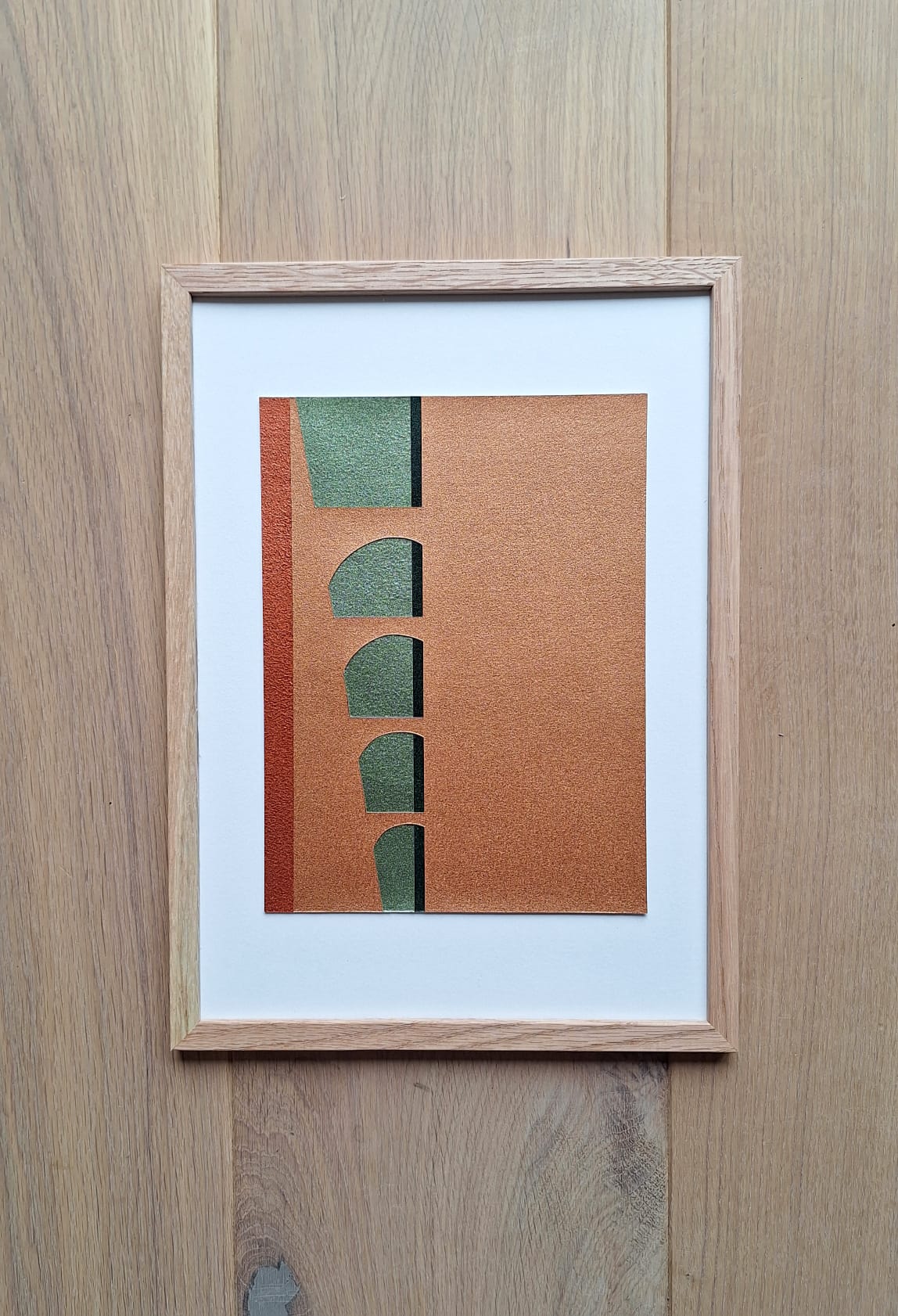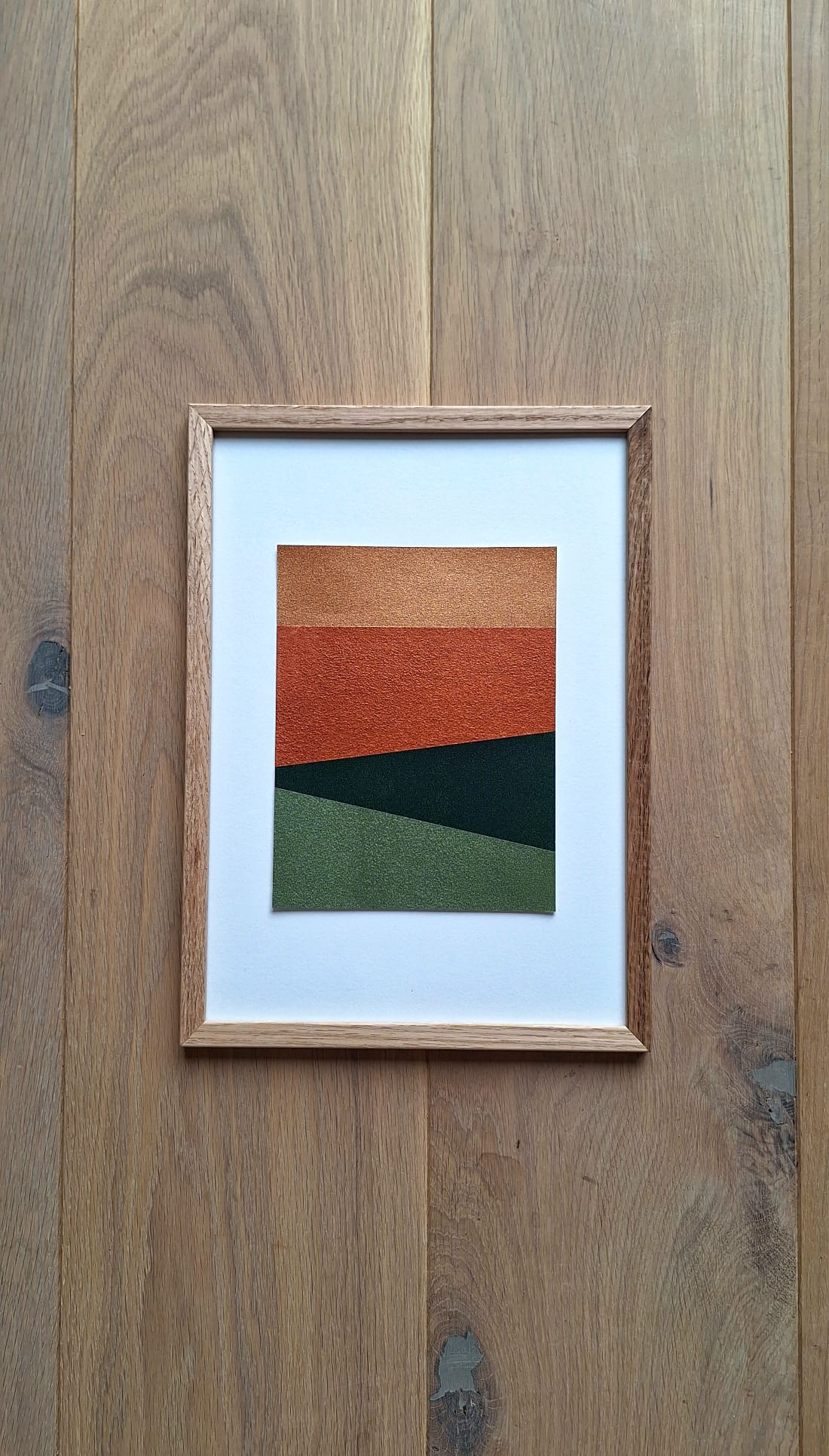 Gevarieerd formaat, ingelijst in eikenhouten A4-lijst